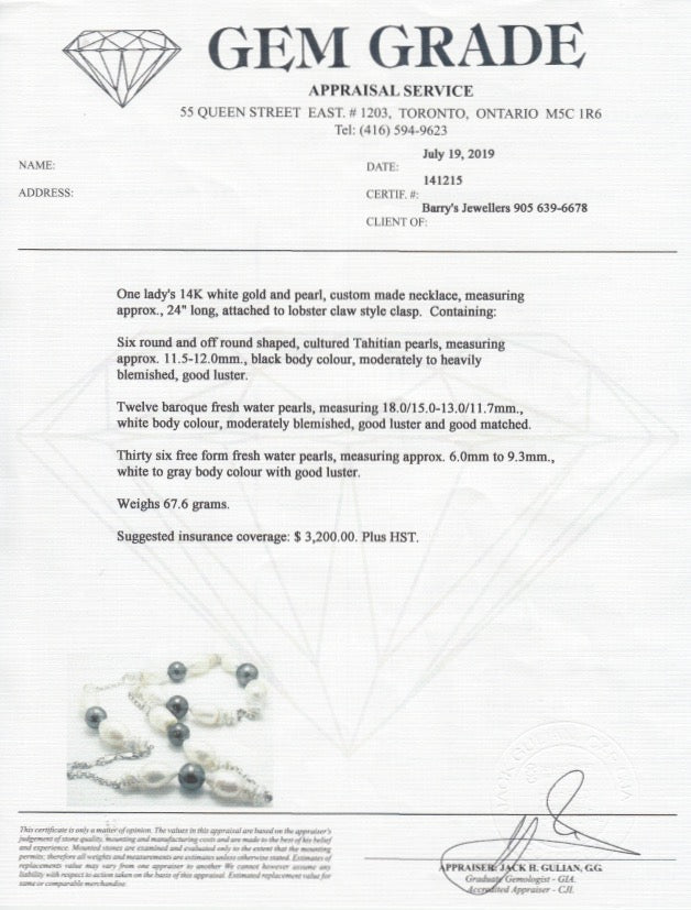 If there's one thing that never goes out of style, it's pearls! A staple in any jewellery lover's collection, pearls are the perfect blend of class and femininity. This custom designed strand merges six rounded lustrous, black body coloured "cultured Tahitian pearls" with moderate to heavy blemishes, with two different types of silvery white pearls to create dimension and substance.