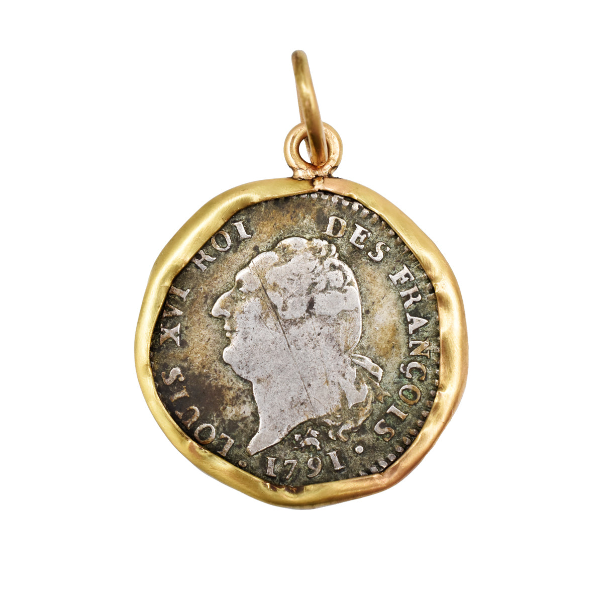 Materials: Silver coin set in 14 karat yellow gold carrier.